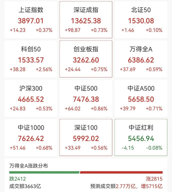 10月9日早盘,A股三大指数集体高开,截至发稿,沪指涨0.37%,深成指涨0.73%,创业板指涨0.75%。