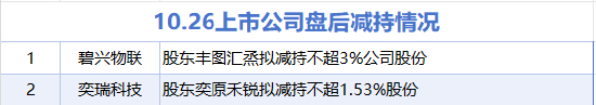 据统计,10月26日,暂无A股上市公司披露增持情况。包括碧兴物联、奕瑞科技在内的2家A股上市公司披露减持情况。