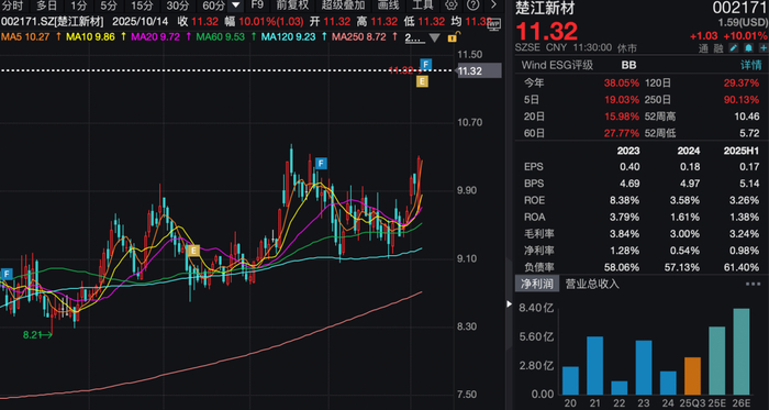 楚江新材今日公告,预计2025年前三季度实现归属于上市公司股东的净利润为3.5亿元—3.8亿元,同比增长2057.62%—2242.56%。