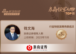 近日,新浪财经首届上市券商领军人物领导力TOP榜结果出炉,浙商证券总裁钱文海荣获行业特色发展券商第3名。