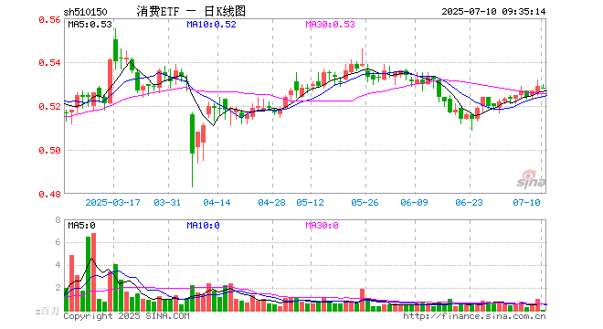 7月10日,消费ETF(510150)开盘跌0.19%,报0.528元。消费ETF(510150)重仓股方面,贵州茅台开盘涨0.01%,恒瑞医药跌0.10%,伊利股份涨0.00%,药明康德涨0.16%,山西汾酒跌0.52%,海尔智家涨0.08%,福耀玻璃跌0.02%,赛力斯跌0.29%,上汽集团涨0.00%,海天味业涨0.05%。