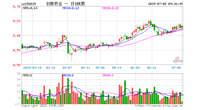 7月8日,创新药50ETF(159835)开盘涨0.00%,报0.625元。创新药50ETF(159835)重仓股方面,药明康德开盘跌0.30%,恒瑞医药涨0.08%,科伦药业涨0.03%,华东医药跌0.43%,复星医药跌0.16%,长春高新涨0.00%,百济神州涨0.02%,智飞生物跌0.10%,康龙化成涨0.17%,泰格医药跌0.09%。