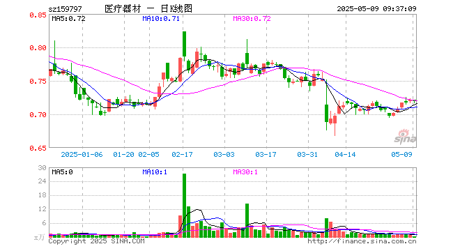 医疗器械ETF基金(159797)开盘涨0.00%,重仓股迈瑞医疗跌0.07%,联影医疗涨0.00%
