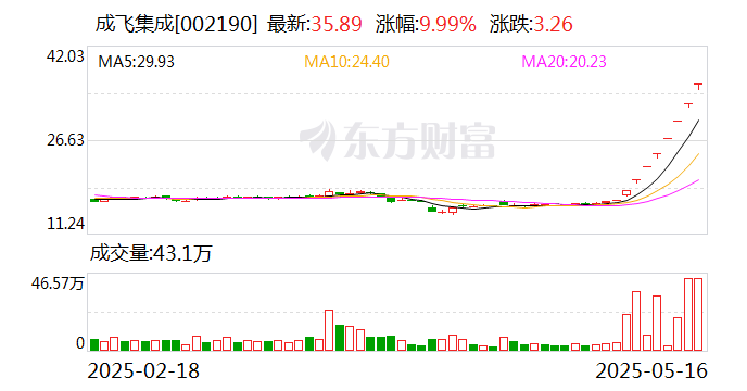 成飞集成今日早盘再度涨停,走出8连板行情,自5月7日以来,该股股价累计上涨114.40%。