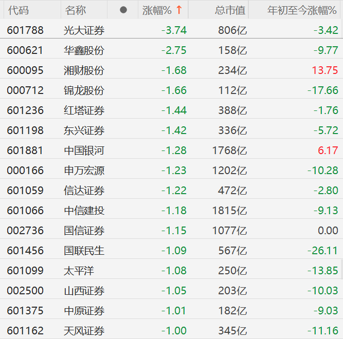 格隆汇6月6日|A股券商股普跌,其中,光大证券跌近4%,华鑫股份跌近3%,湘财股份、锦龙股份、红塔证券、东兴证券、中国银河跌超1%。