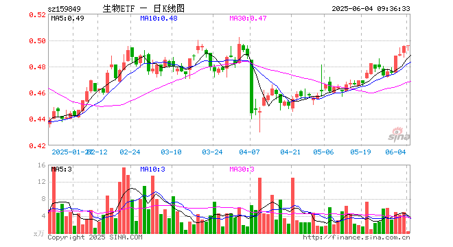 生物科技指数ETF(159849)业绩比较基准为中证生物科技主题指数收益率,管理人为招商基金管理有限公司,基金经理为房俊一,成立(2021-02-08)以来回报为-50.45%,近一个月回报为7.51%。