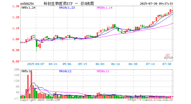 科创生物医药ETF(588250)业绩比较基准为上证科创板生物医药指数收益率,管理人为鹏华基金管理有限公司,基金经理为林嵩,成立(2025-03-12)以来回报为26.09%,近一个月回报为17.54%。
