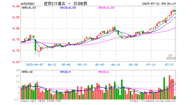 7月31日,医药ETF嘉实(515960)开盘涨0.00%,报0.881元。医药ETF嘉实(515960)重仓股方面,药明康德开盘跌2.88%,恒瑞医药跌0.30%,迈瑞医疗涨0.00%,科伦药业跌0.50%,华东医药涨0.00%,新和成涨0.04%,长春高新跌0.17%,复星医药跌1.23%,信立泰涨0.02%,爱美客跌0.69%。