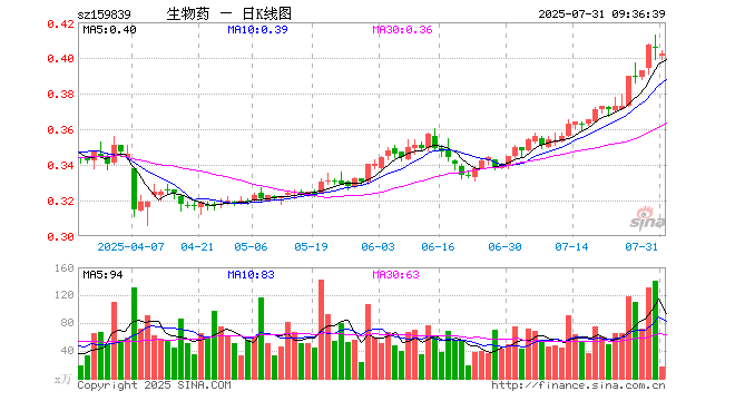 7月31日,生物药ETF(159839)开盘跌0.99%,报0.401元。生物药ETF(159839)重仓股方面,药明康德开盘跌2.88%,上海莱士跌0.14%,复星医药跌1.23%,长春高新跌0.17%,泰格医药涨0.15%,爱美客跌0.69%,康龙化成跌1.15%,百利天恒跌0.22%,智飞生物涨0.00%,万泰生物涨1.14%。