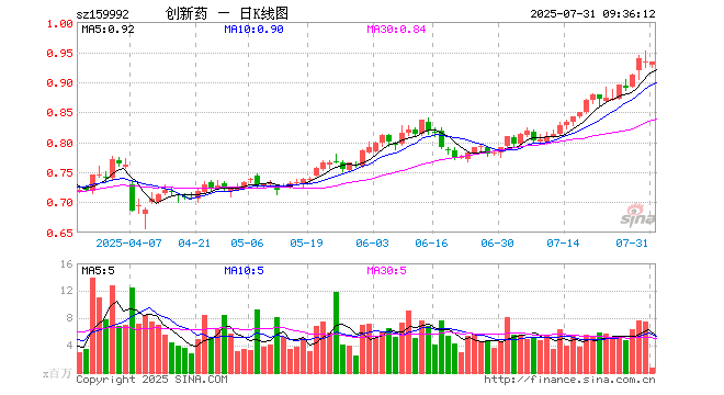 7月31日,创新药ETF(159992)开盘跌0.54%,报0.928元。创新药ETF(159992)重仓股方面,药明康德开盘跌2.88%,恒瑞医药跌0.30%,科伦药业跌0.50%,华东医药涨0.00%,长春高新跌0.17%,复星医药跌1.23%,泰格医药涨0.15%,信立泰涨0.02%,百济神州跌0.21%,通化金马涨0.39%。