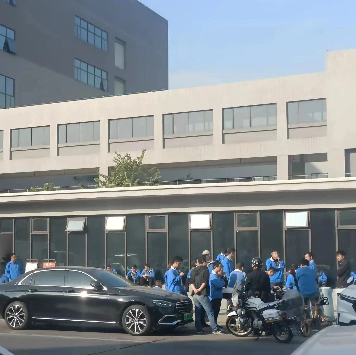 记者周三看到,上述在园区门口聚集的身着蓝色工服的员工在上午十时许悉数进入了厂区,十一点半左右陆续走出后又在门口聚集,接近下午两点再次入厂。王新表示,“早上领导都没来”,下午会继续沟通。
