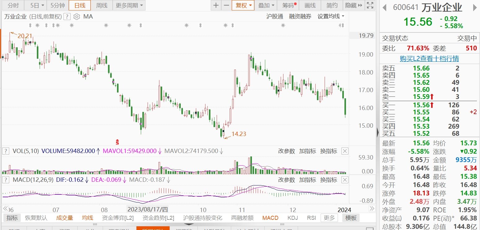 A股异动 | 万业企业跌超5% 股东三林万业减持3497.66万股