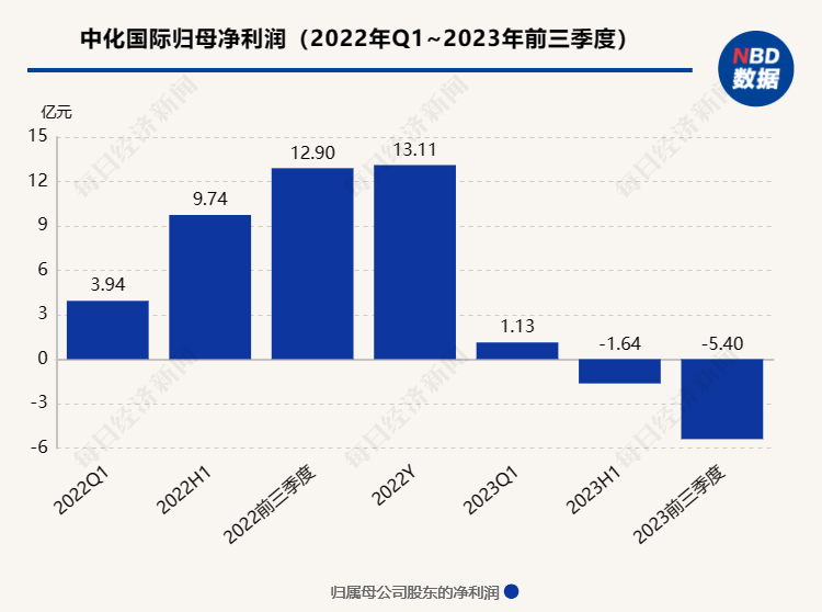 《每日经济新闻》记者注意到,据中化国际2023年三季报,其2023年前三季度归母净利润约-5.4亿元。这也意味着,在2023年第四季度,中化国际出现了大幅亏损,亏损金额约10.6亿元至14.6亿元。