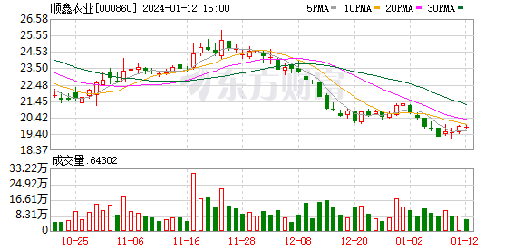 截至1月12日收盘,顺鑫农业每股报19.8元,下跌0.25%,公司最新市值为147亿元。