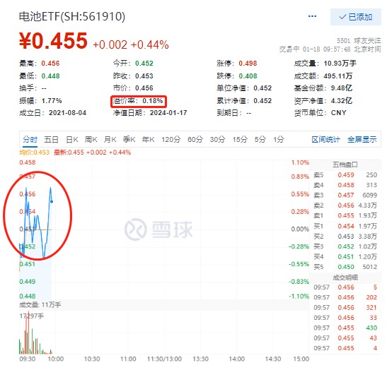2024年1月18日,电力设备领涨行业。截至9时59分,电池ETF(561910)涨0.44%,盘中振幅达1.77%。成分股南都电源、锦浪科技、德业股份、阳光电源涨幅居前。