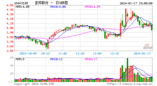 二级市场上,1月17日,亚邦股份收跌3.95%,股价报3.95元/股,最新总市值为22.52亿元。