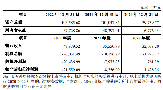 科大讯飞拟分拆讯飞医疗上市:后者三年营收11.7亿元 亏损近3亿