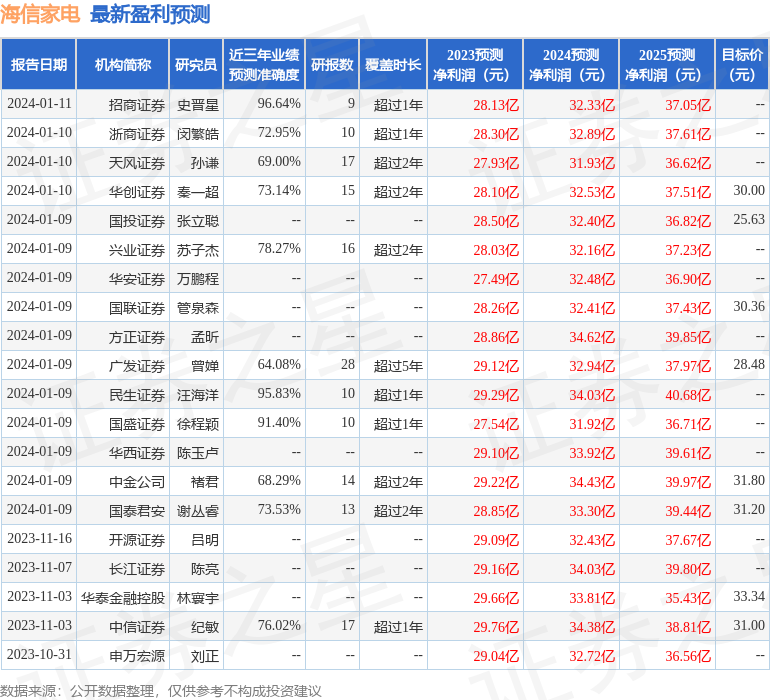 民生证券股份有限公司王刚,汪海洋近期对海信家电进行研究并发布了研究报告《2023年业绩预告点评:外销旺盛需求延续,业绩保持高增》,本报告对海信家电给出买入评级,当前股价为25.41元。