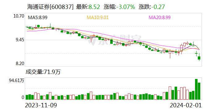 作为头部券商之一的海通证券2023年业绩表现并不理想,其预计2023年实现归属于母公司所有者的净利润9.18亿元到10.1亿元,与上年同期相比,将减少55.35亿元到56.27亿元,同比减少84.57%到85.97%。对于业绩预减的主要原因,海通证券表示,2023年,受市场波动和欧美央行大幅加息影响,公司境外金融资产估值下降幅度较大,境外利息支出大幅增长;公司部分业务收入同比减少;因上年比较基数较小,公司信用资产减值拨备同比增加。