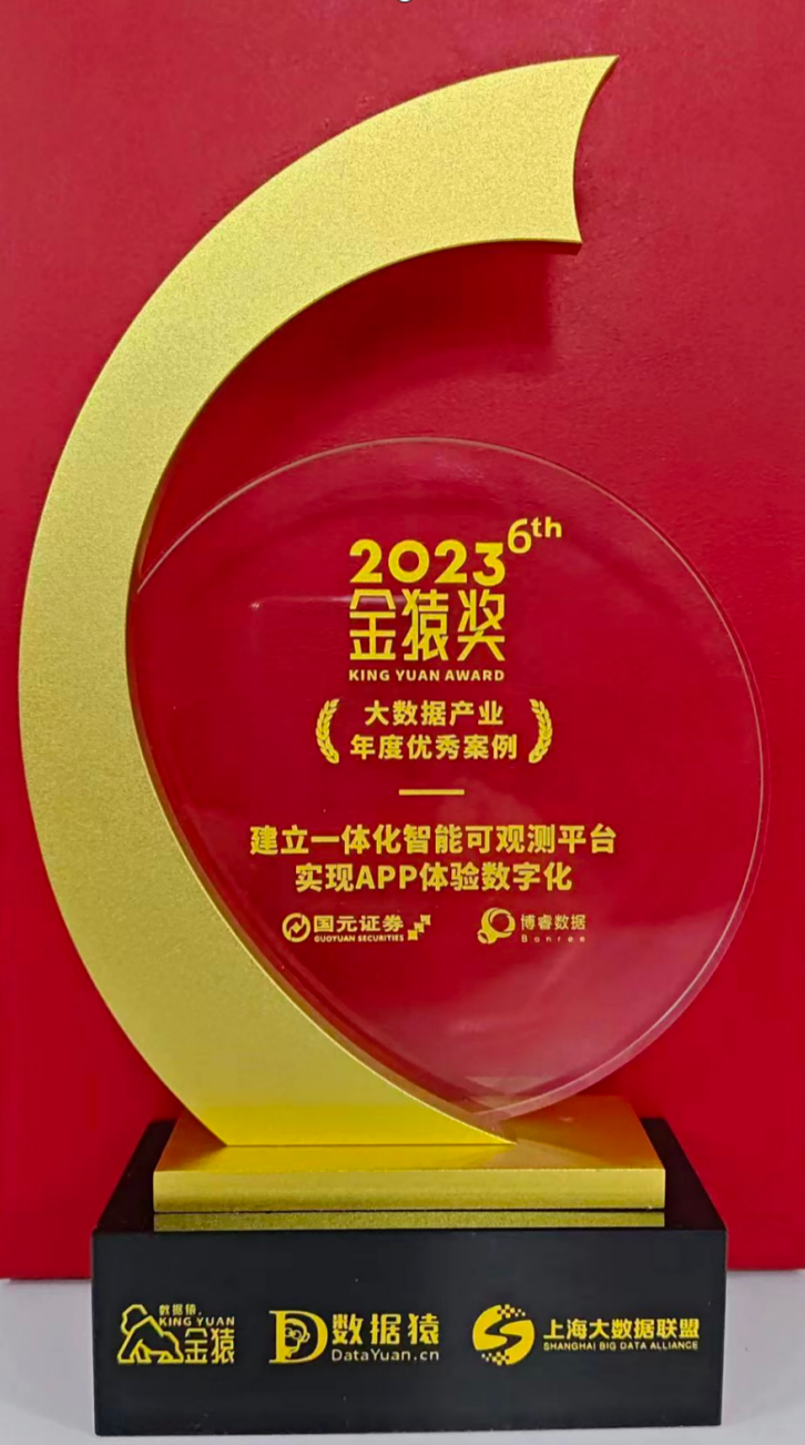 近日,备受瞩目的“第六届年度金猿奖评选活动——2023大数据产业创新服务企业榜单/奖项”颁奖典礼在上海盛大举行。国元证券凭借其卓越的数字化转型成果,荣获了“大数据产业年度优秀案例”大奖。此次获奖的项目为国元证券一体化智能可观测平台,该平台实现了客户在国元点金App全生命周期使用过程的性能可视化,进一步巩固了国元点金App的稳定性和可靠性。