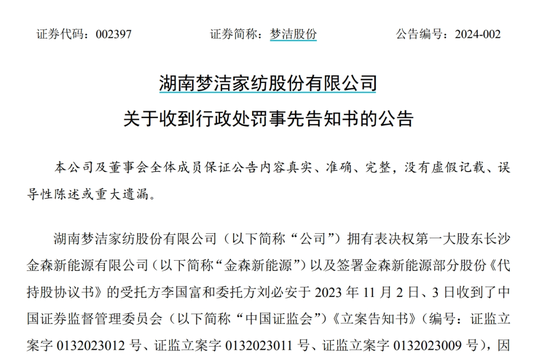 1月22日,梦洁股份收到湖南证监局下发的《行政处罚事先告知书》,因为一份股权代持协议,公司原先找来的“白衣骑士”长沙金森,以及长沙金森表面上的股东李国富、刘彦茗,背后真正的实控人刘必安合计被罚500万元。