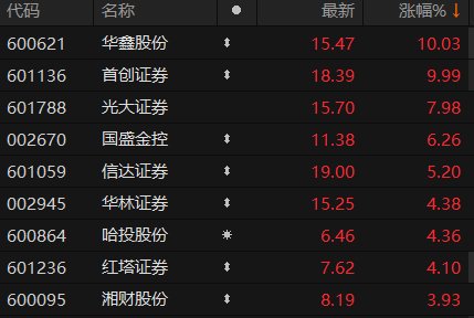 A股证券板块异动拉升 华鑫股份、首创证券午后涨停