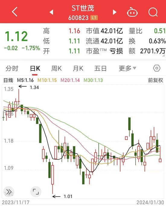 1月30日,ST世茂股价收报1.12元/股,跌幅为1.75%。1月29日晚间,公司披露的业绩预告显示,预计2023年度实现归属于上市公司股东的净利润为-50.1亿元到-33.4亿元。