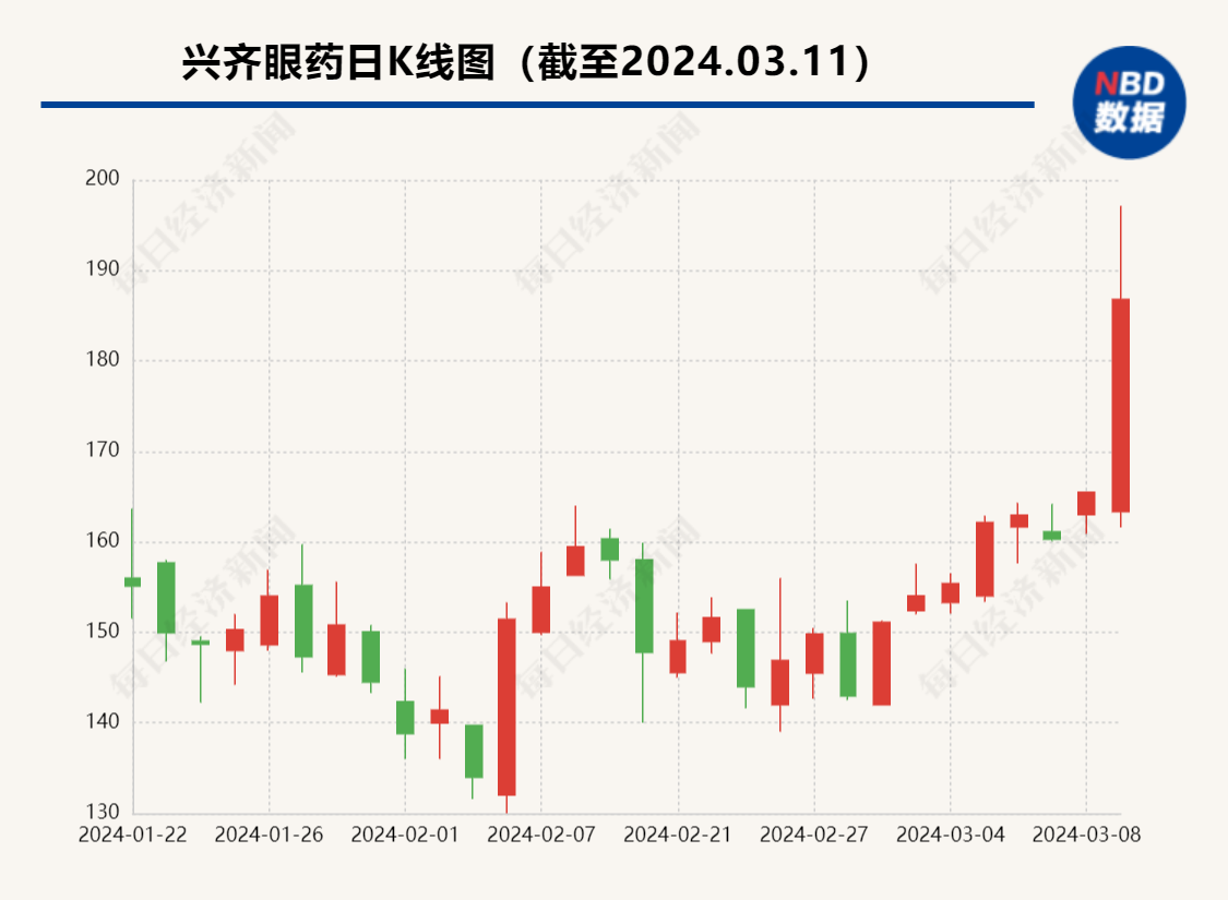 当日盘中,兴齐眼药盘中涨幅一度超15%。截至收盘,兴齐眼药上涨12.88%,收于186.80元。