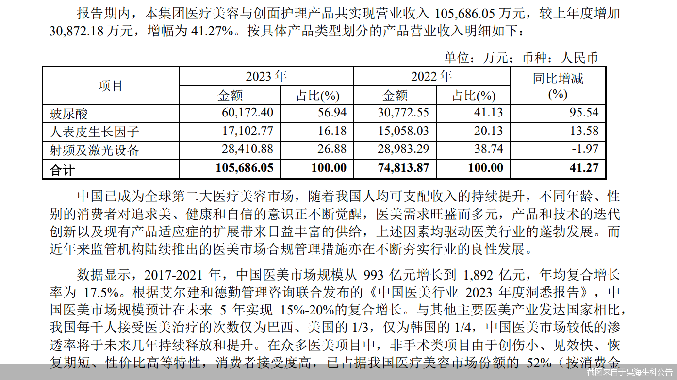 医美相关业务占比跃升至榜首,主要因玻尿酸业务收入大幅增加所致。