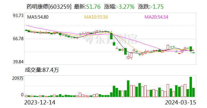 受与BIO关系终止消息的影响,3月14日,药明康德A股收跌5.71%,H股收跌12.12%。截至15日午盘,药明康德A股跌超3%,H股跌超4%。