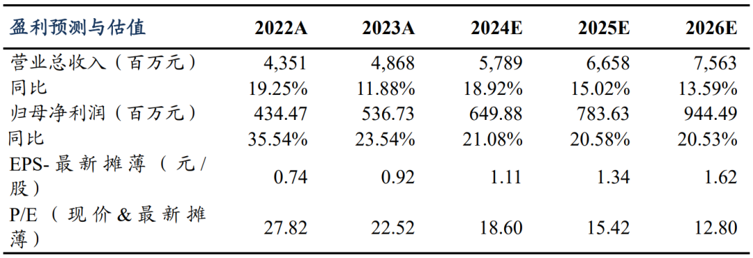 事件:公司公告,2023 年实现营业总收入 26.54 亿元(+24.59%,表示同比增速,下同),实现归母净利润 4.16 亿元(+130.58%),实现扣非归母净利润 3.83 亿元(+141.52%)。2023年Q4季度,公司实现营业总收入 6.72 亿元(+22.74%),实现归母净利润 0.89 亿元(+377.12%),实现扣非归母净利润 0.79 亿元(+330.78%)。业绩符合预期。