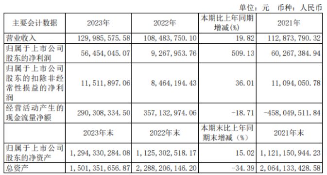 挖贝网3月4日,汇通能源 近日发布2023年年度报告,报告期内公司实现营业收入129,985,575.58元,同比增长19.82%;归属于上市公司股东的净利润56,454,045.07元,同比增长509.13%。