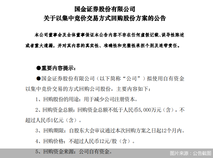 北京商报讯(记者 李海媛)3月4日,国金证券发布公告称,基于对公司持续发展的信心和对公司价值的高度认可,为维护广大投资者的利益,增强投资者对公司的投资信心,同时促进公司稳定健康发展,公司拟以自有资金通过上海证券交易所交易系统以集中竞价方式回购公司A股股份。回购的股份将用于减少公司注册资本,并自回购完成之日起十日内注销。