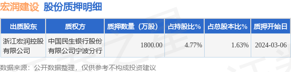 宏润建设(002062)股东浙江宏润控股有限公司质押1800万股,占总股本1.63%