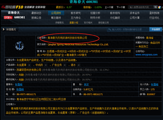 值得注意的是,听花酒母公司青海春天药用资源科技股份有限公司,即A股上市公司青海春天。
