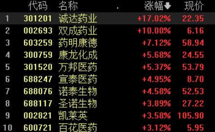 医药板块全线走高,双成药业等多股涨停,药明康德触及涨停