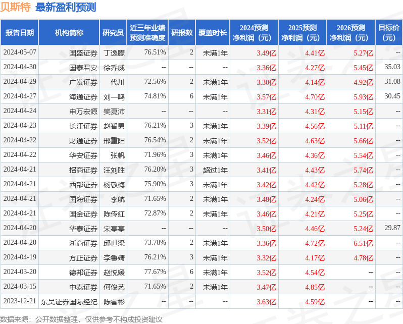 以下是详细的盈利预测信息: