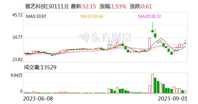 证券时报·数据宝统计,截至发稿,雅艺科技最新股价为32.33元,上涨2.50%,本期筹码集中以来股价累计下跌0.52%。具体到各交易日,5次上涨,5次下跌。