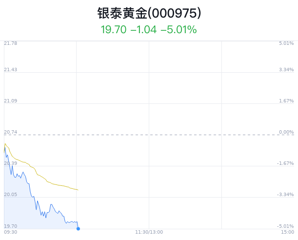 05月21日,银泰黄金(000975)股价大幅下跌,截至10点31分,银泰黄金下跌5.01%,报19.70元/股,突破10元整数关口,成交4.23亿元,换手率0.85%,振幅5.79%。