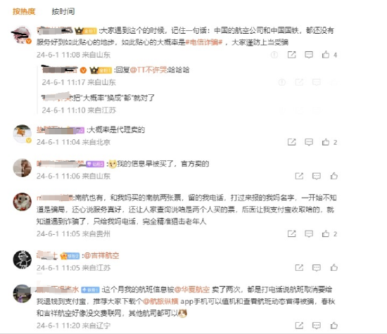 有微博大V质疑航空公司:个人信息好像被@吉祥航空卖了 接到诈骗电话