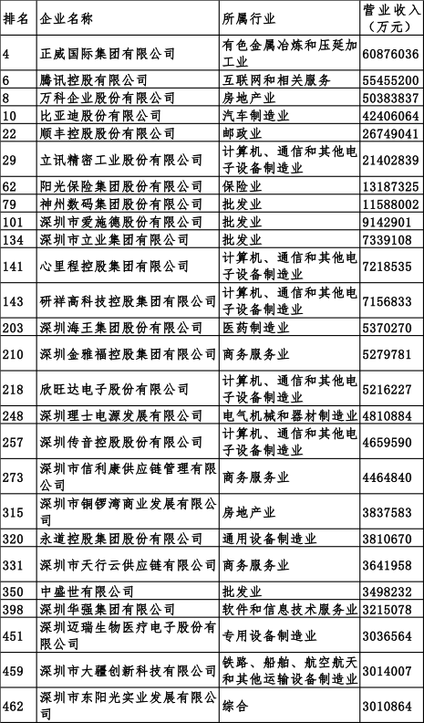 500强榜单深圳上榜企业