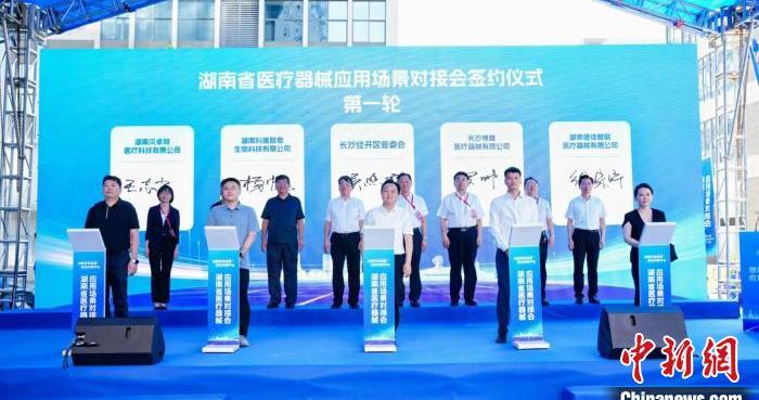 中新网长沙6月21日电 (记者 唐小晴)湖南省医疗器械应用场景专题对接会暨第九届医疗器械院企对接会21日在长沙经开区的湖南自贸试验区医疗器械产业园举行。百余家行业企业、医疗机构、科研院所参加。