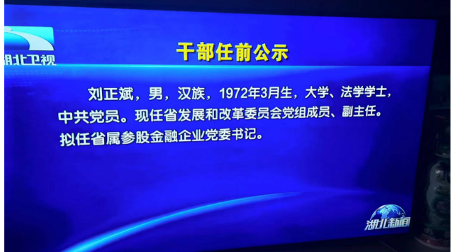 刘正斌即将履新长江证券的消息,来自湖北卫视今晚发布的干部任前公示信息。