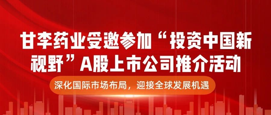 深化国际市场布局,迎接全球发展机遇 | 甘李药业受邀参加“投资中国新视野”A股上市公司推介活动