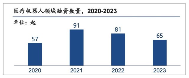 从投融资情况来看,动脉网数据显示,截至2023年11月30日,手术机器人领域共发生了21起融资,融资事件数量相比于2022年有所下降,但仍高于2020年的水平。其中,融资事件上,腹腔镜手术机器人、眼科&显微外科手术机器人分别有4起,骨科手术机器人、血管介入手术机器人分别有3起。