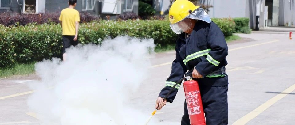 “各就各位,预备”,随着发令员一声令下,参赛选手迅速穿上防火服,拎起灭火器直冲终点。检查灭火器压力是否正常,将灭火器上下颠倒摇晃使干粉松动,拔掉铅封,拉出保险销,一只手抓喷管,另一只手握压把,对准油桶火焰根部扫射。一套操作有条不紊,规范迅猛地将火扑灭。