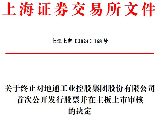 中国经济网北京6月27日讯 上交所网站昨日披露了关于终止对地通工业控股集团股份有限公司(以下简称“地通控股”)首次公开发行股票并在主板上市审核的决定。