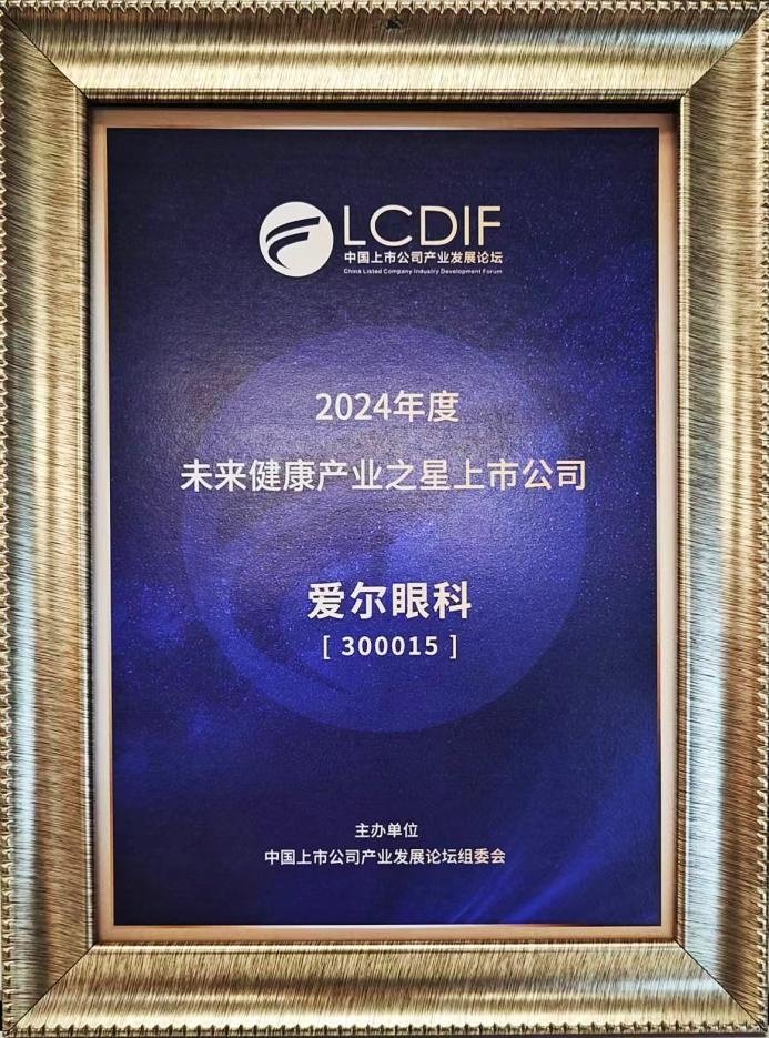 用科技创新驱动高质量发展,爱尔眼科荣获2024年度“未来健康产业之星上市公司”奖