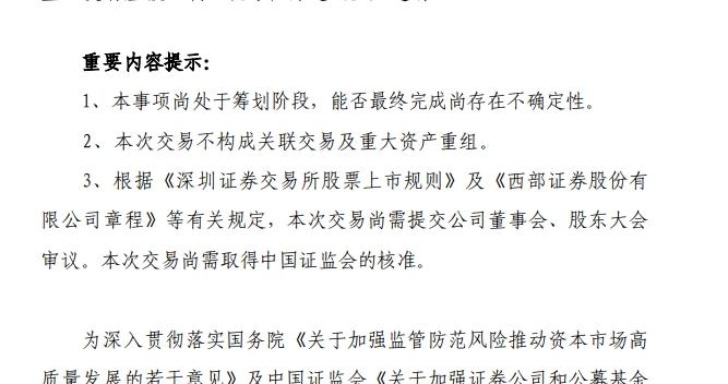 券商并购又来新消息!西部证券筹划收购国融证券控股权