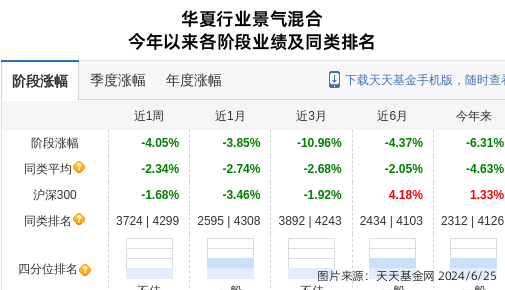 其中,华夏行业景气混合今年以来收益率-6.31%,同类排名2312(总4126),华夏中证动漫游戏ETF联接A今年以来收益率-23.49%,同类排名2526(总2633)。